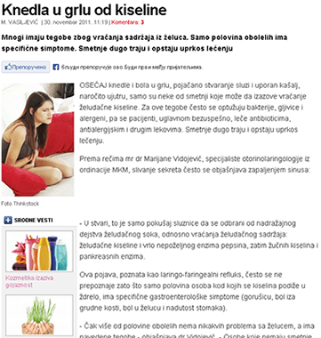 Pri tome mi smo jedina ustanova koja se u Srbiji i okolnim zemljama bavi ispitivanjem i lečenjem uticaja sadržaja želuca na oboljenja ORL regije i pluća.